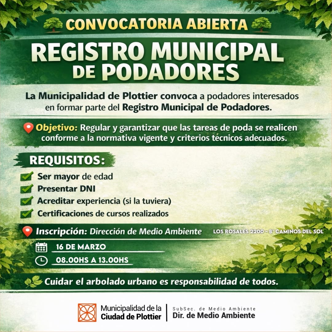 Alta convocatoria para el registro de podadores en Plottier