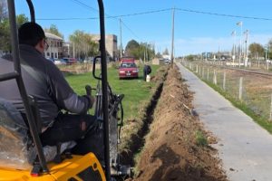 La Municipalidad de Plottier avanza con 470 metros de excavación para la instalación de nuevas luminarias en la bicisenda de calle Riavitz hasta Ejército Argentino,