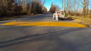 Se continúan realizando trabajos de pintura en lomos de burro en la localidad. En esta oportunidad se abarcaron los ubicados sobre calles Lugones, Paraguay, Candole y Reguero, próximamente Río Colorado y resto de la expansión de la trama urbana.