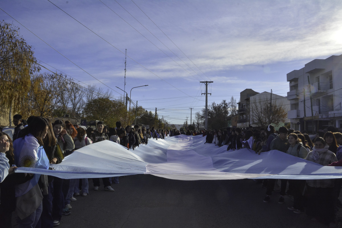 La jornada se inició con el recorrido de los estudiantes con una bandera individual extensa por un circuito que inició en la Casa de la Cultura y finalizó en la Plaza San Martín de la localidad.